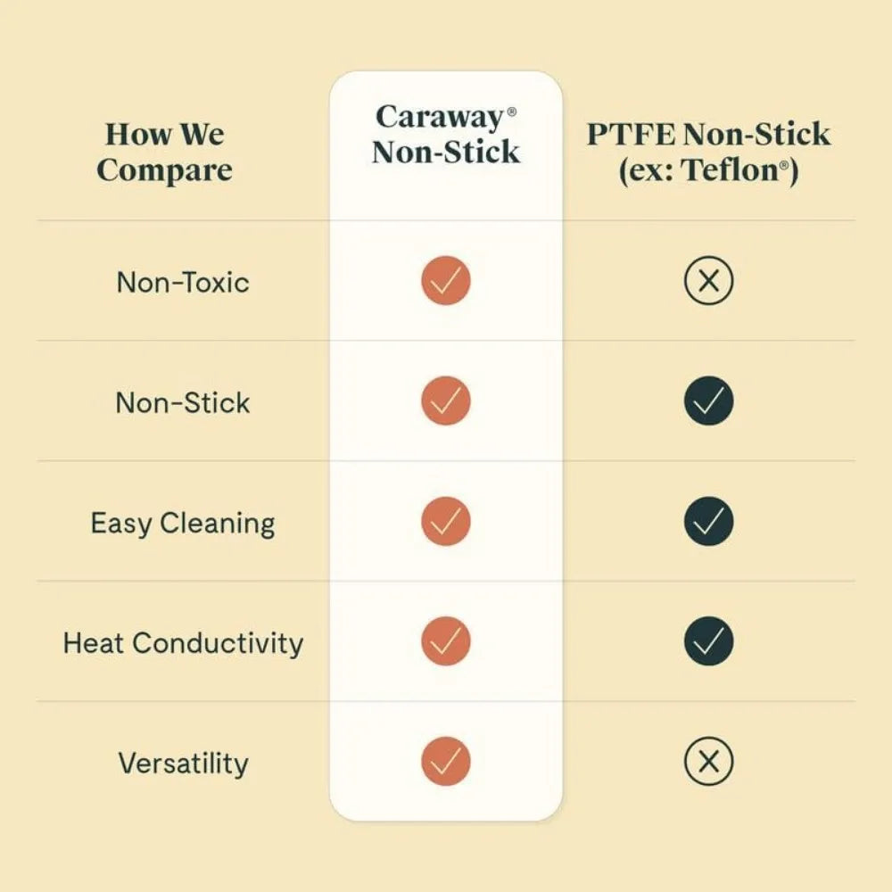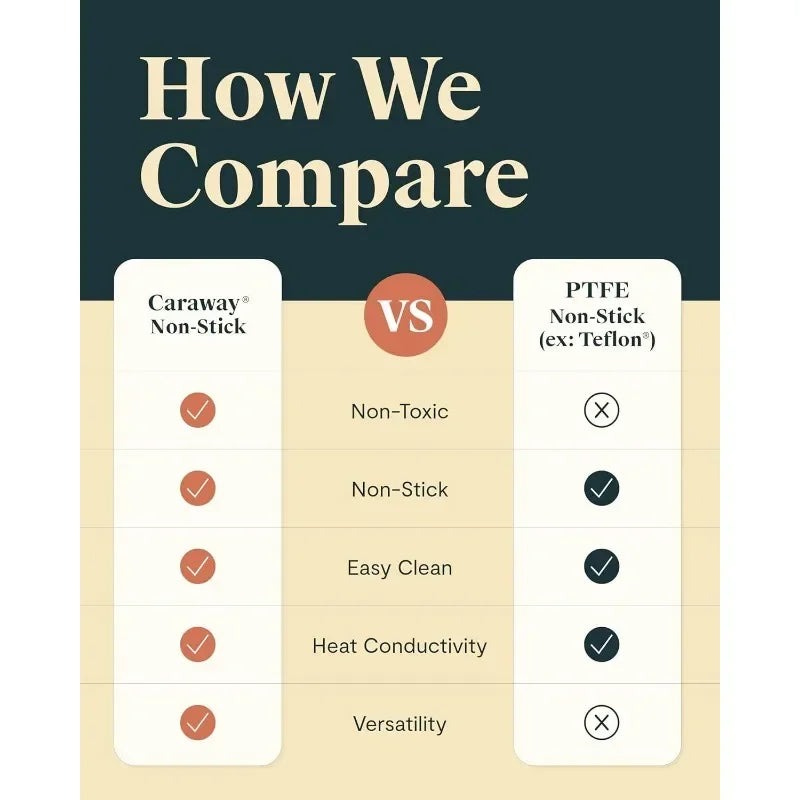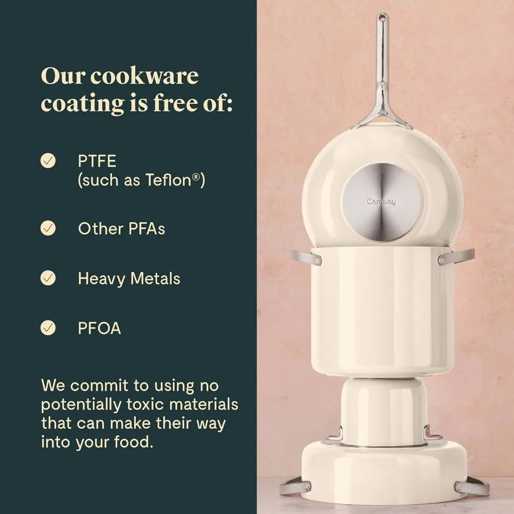 Featuring cross-compatible lids, this set is engineered to work effortlessly with other pieces from the classic Caraway Cookware Set, offering maximum flexibility and convenience.
